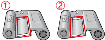 的點,然後按順時針方向旋轉以捲起 [墨水紙]。捲動 [墨水紙] 直至鬆馳部份繃緊。過度捲動可能會減少可以打印的數量。IMPORTANT