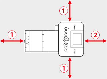 - 請確保打印機前後留出至少為紙張長度的空間。(打印時紙張將進入或送出。)