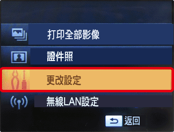 )按鈕時,出現下方螢幕,選擇 [更改設定]。
