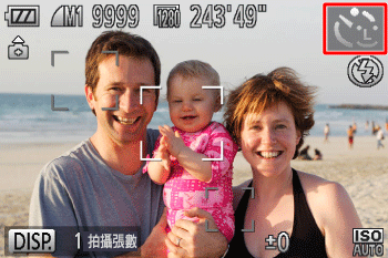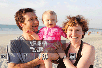 相機會在偵測到其他人的臉部 (如拍攝者) 進入拍攝區域約兩秒鐘後進行拍攝。想要將自己加入集體照或類似拍攝場合時,此功能會很有用。