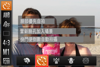 5.左右按 <方向按鈕> 選擇 [臉部優先自拍] (