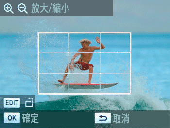- 每按一次 EDIT 按鈕,裁切框會在人像和風景之間切換。