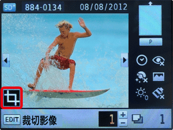 - 如果要在設定後更改裁切範圍,在影像顯示螢幕按 <EDIT> 按鈕,選擇 [調整裁切],然後按 <OK> 按鈕重複步驟 4 至 5。