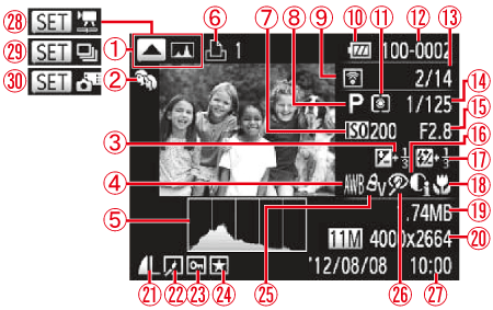 ![]() | 資料夾編號 – 檔案編號 | ![]() | 拍攝日期/時間 |