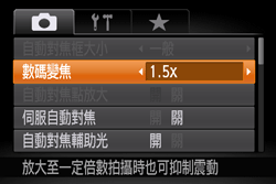 - 設定 [數碼變焦] 為 [1.5x] 或 [2.0x]