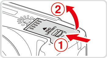 開啟和關閉記憶卡/電池蓋 (PowerShot SX50 HS)