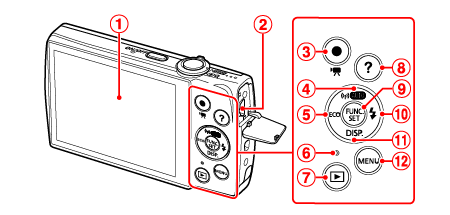 ![]() | 螢幕 (液晶螢幕) | ![]() | < (播放)>按鈕 |