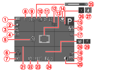 ![]() | 數碼變焦放大倍率 | ![]() | 影像穩定器模式圖示 |