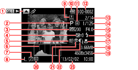 ![]() | 測光方式 | ![]() | 拍攝日期/時間 |