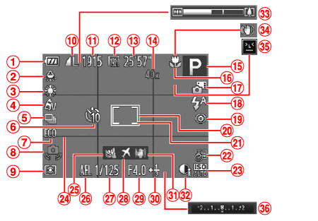 ![]() | 剩餘可記錄時間 | ![]() | 影像穩定器 |