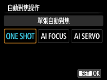 - ONE SHOT:單張自動對焦