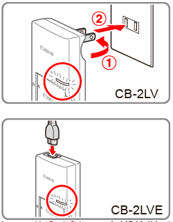 。-CB-2LVE:將電源線插入充電器,然後將另一端插入電源插座。