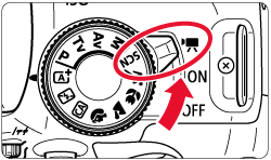 將拍攝定時開關設定到 <2> (2 秒延遲),然後按傳輸按鈕。如果開關設定到 <o> (立即拍攝),靜止影像拍攝將生效。 - 使用自 2011 年下半年上市的具有對焦預設模式的 (超) 遠攝鏡頭時,可使用對焦預設功能進行短片拍攝。