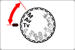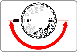 2. 將模式轉盤設定到以下模式 (下圖標示區域內) 中的一種。