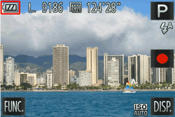 開啟相機電源,電量圖示將出現在液晶螢幕上。如果該圖示沒有出現,觸摸 [DISP.] 幾次顯示圖示。