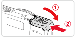 - 開啟蓋子並沿箭頭方向按壓電池鎖。