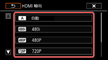 ]: 自動] 以外的選項並且所連接的顯示器與攝錄機輸出的信號不蒹容,HDMI 輸出將會停止。攝錄機可以從 HD/SD-SDI 端子 (只適用於