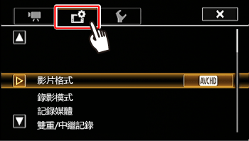 - 一次可以記錄的視頻數量約為以一般速度播放 12 小時的視頻量。如超過該數量,攝錄機將自動停止記錄。但是,如使用快慢動作記錄,記錄時間將會變更。例如,影片格數設定為 29.97P 並且為拍攝影片格數選擇 59.94P 時,記錄時間將為 6 小時 (播放時間將為 12 小時)。