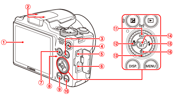 部件名稱及螢幕上顯示的資訊 (PowerShot SX510 HS)
