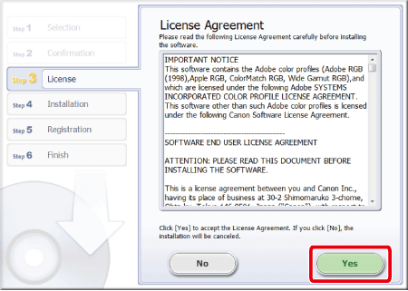 12. 安裝 ImageBrowser EX 時,連接至互聯網的電腦上會出現以下螢幕。如同意免責聲明,按一下 [是 (Yes)]。