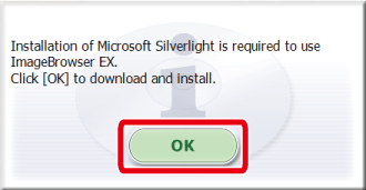 如電腦上未安裝 Microsoft Silverlight,ImageBrowser EX 將不會運行。確保安裝 Microsoft Silverlight。
