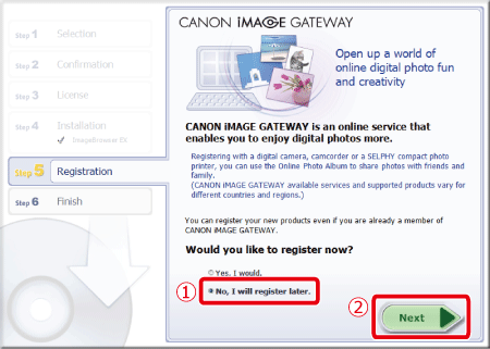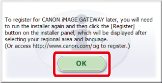 (要註冊至 CANON iMAGE GATEWAY,選擇 [是,立即安裝 (Yes, I would)] 並完成註冊操作。)