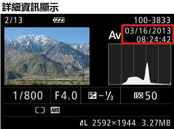 如果在拍攝前未將正確的日期和時間設定輸入相機,則影像播放中顯示的日期和時間資訊也不正確。