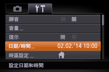 > 按鈕選擇 [日期/時間]。完成後,按 <FUNC./SET> (