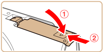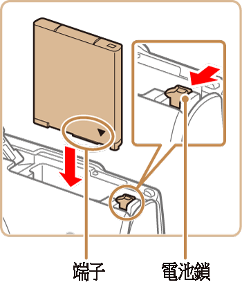 - 如果以錯誤方向插入電池,則電池無法鎖定到正確的位置。插入電池時,請隨時確認電池以正確方向鎖定到位。