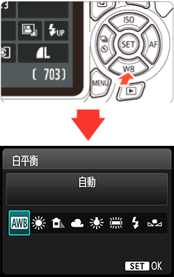 首先按照以下步驟設定白平衡。