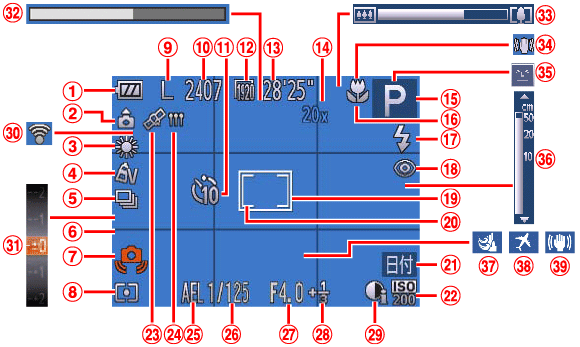 ![]() | 白平衡 | ![]() | GPS 接收狀態 |