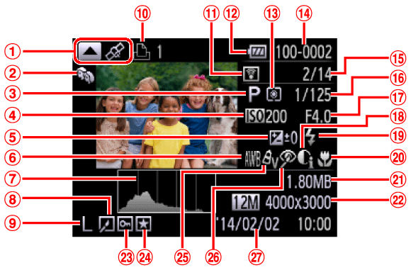 ![]() | 可記錄數量 | ![]() | Eye-Fi 連接狀態 |