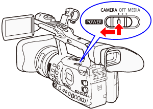 1. 按住 <POWER> 開關上的按鈕,然後將其移動到 <CAMERA>。