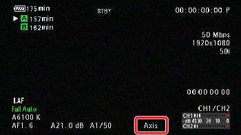 - 可以選擇 [相機設定] > [軸偏移] > [GUI 顏色] 將圖示的顏色變更為 [黃色] 或 [綠色],然後按 <SET> 完成設定。