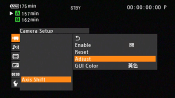 4-1. 選擇 [相機設定] > [軸偏移] > [調整]。