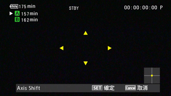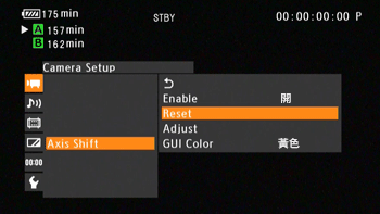 - 透過選擇 [相機設定] > [軸偏移] > [重設] > [確定] 可重新設定鏡頭的位置。按 <SET> 完成設定。