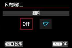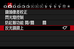 ] 中的 [反光鏡鎖上] 設定。如設定為 [1:啟動],請將其變更為 [0:關閉] 以關閉反光鏡鎖上功能。NOTE
