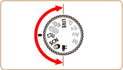 2. 將模式轉盤設定到以下模式 (下圖標示區域內) 中的一種。