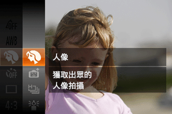 ] 按鈕選擇所需的 [拍攝模式]。(以下範例影像中已選擇 [人像] (