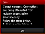正在嘗試同時從多個存取點進行連接時出現此螢幕。稍候片刻,然後重新配置 WPS 設定。按住僅有的一個存取點上的 WPS 按鈕。
