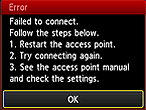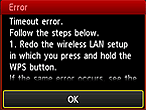 在指定時間內未完成 WPS 設定時出現此螢幕。