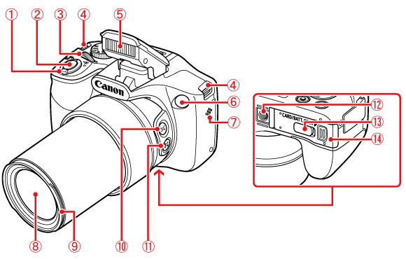 ![]() | 快門按鈕 | ![]() | 鏡頭遮光罩/濾鏡轉接環 |