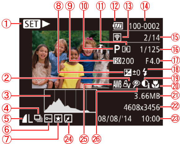 ![]() | 拍攝模式 | ![]() | 拍攝日期/時間 |