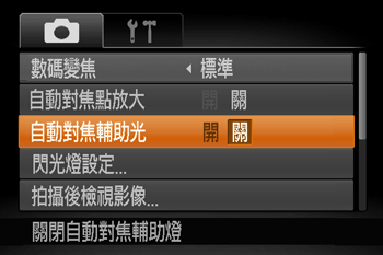 以下是停用自動對焦輔助光的步驟。