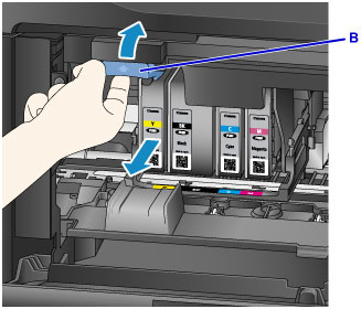 2. 如果觸摸螢幕上顯示更換墨水盒,請向上推動墨水盒彈出桿 (B)。