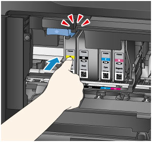 5. 推動墨水盒直至墨水盒穩固地鎖定到位。