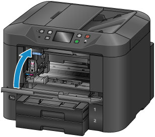 - 如果前蓋開啟超過 60 分鐘,列印頭固定座會移到右側。在此情況下,請關閉並重新開啟前蓋。