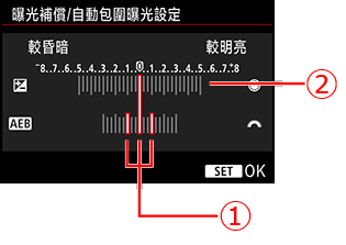 > 轉盤設定曝光補償量。