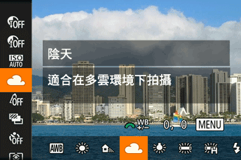 自動 | 自動為拍攝條件設定最佳白平衡。 |