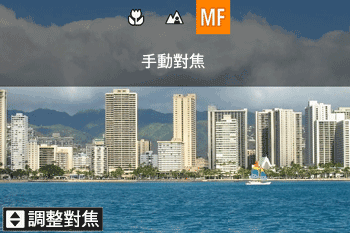 在自動對焦模式中無法對焦時,請使用手動對焦。可指定大概的對焦位置,然後半按快門按鈕,由相機決定指定位置附近的最佳對焦位置。